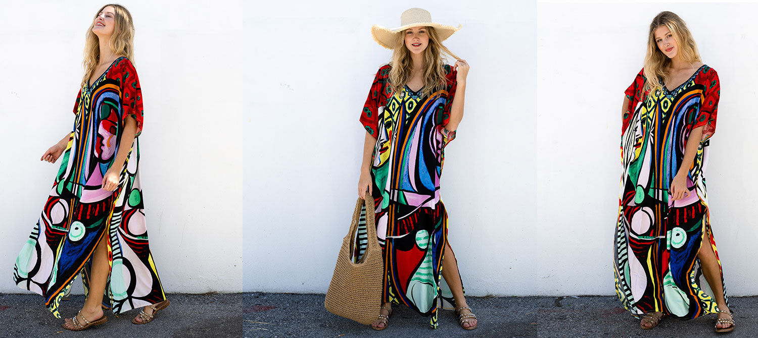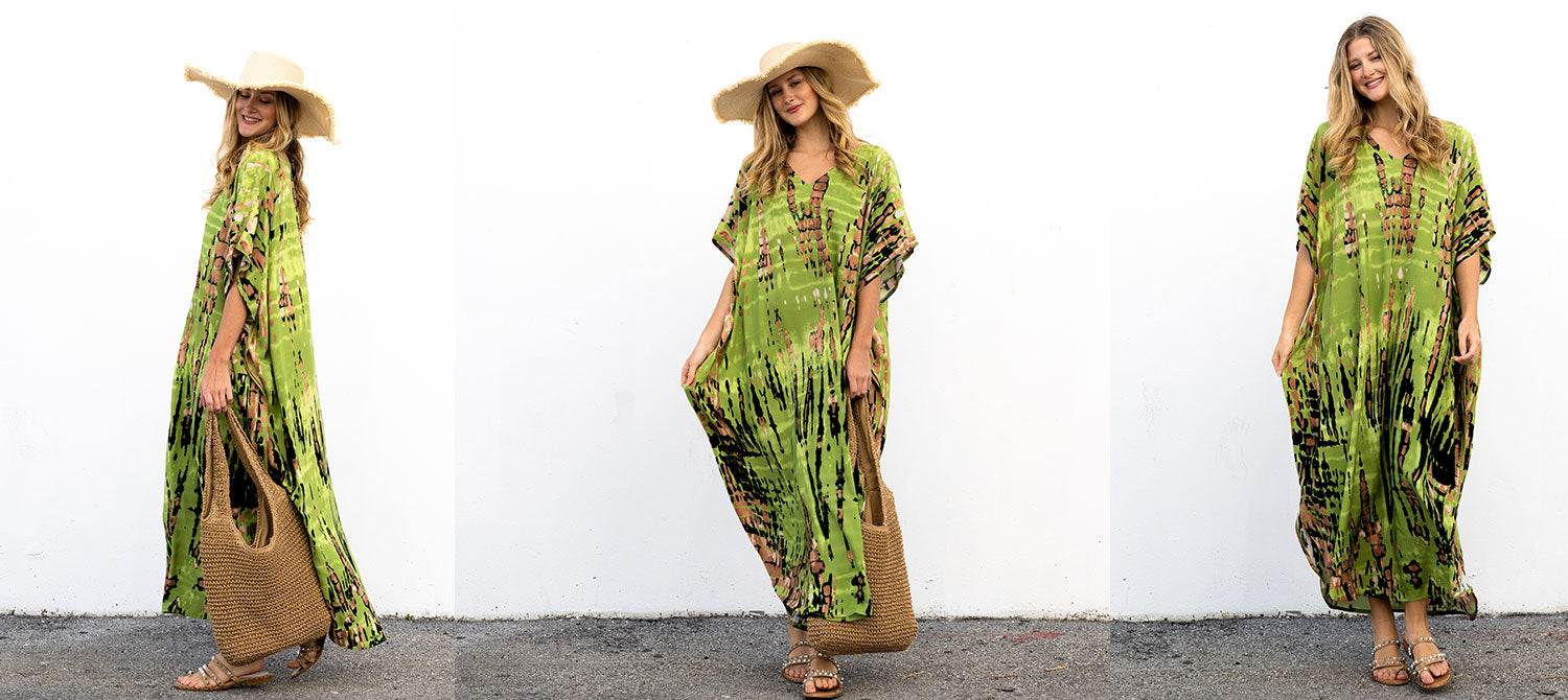 Tutti i caftani hanno una taglia unica con taglio dritto e ampio, adatta a tutte le taglie: fino a 153cm di fianchi e altezza da 150cm a 190cm.